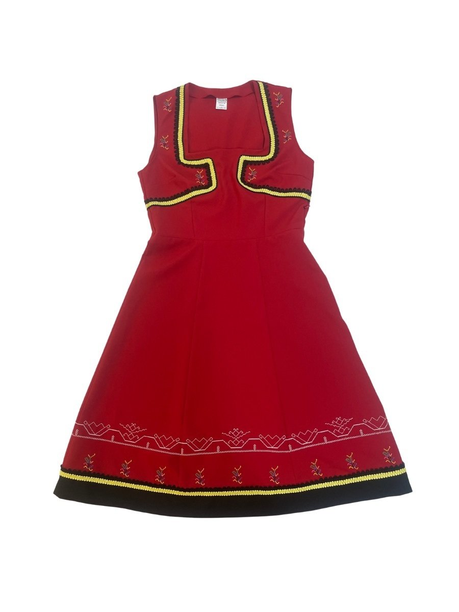 За изработката на ансамбъла е използвана съвременна комбинация от устойчив габардин и фин естествен памук. Габардинът осигурява на сукмана перфектна линия и устойчивост при носене, докато памучната материя на ризата гарантира мекота и прохлада, позволявайки на тялото да диша по време на танци или празнични събития.