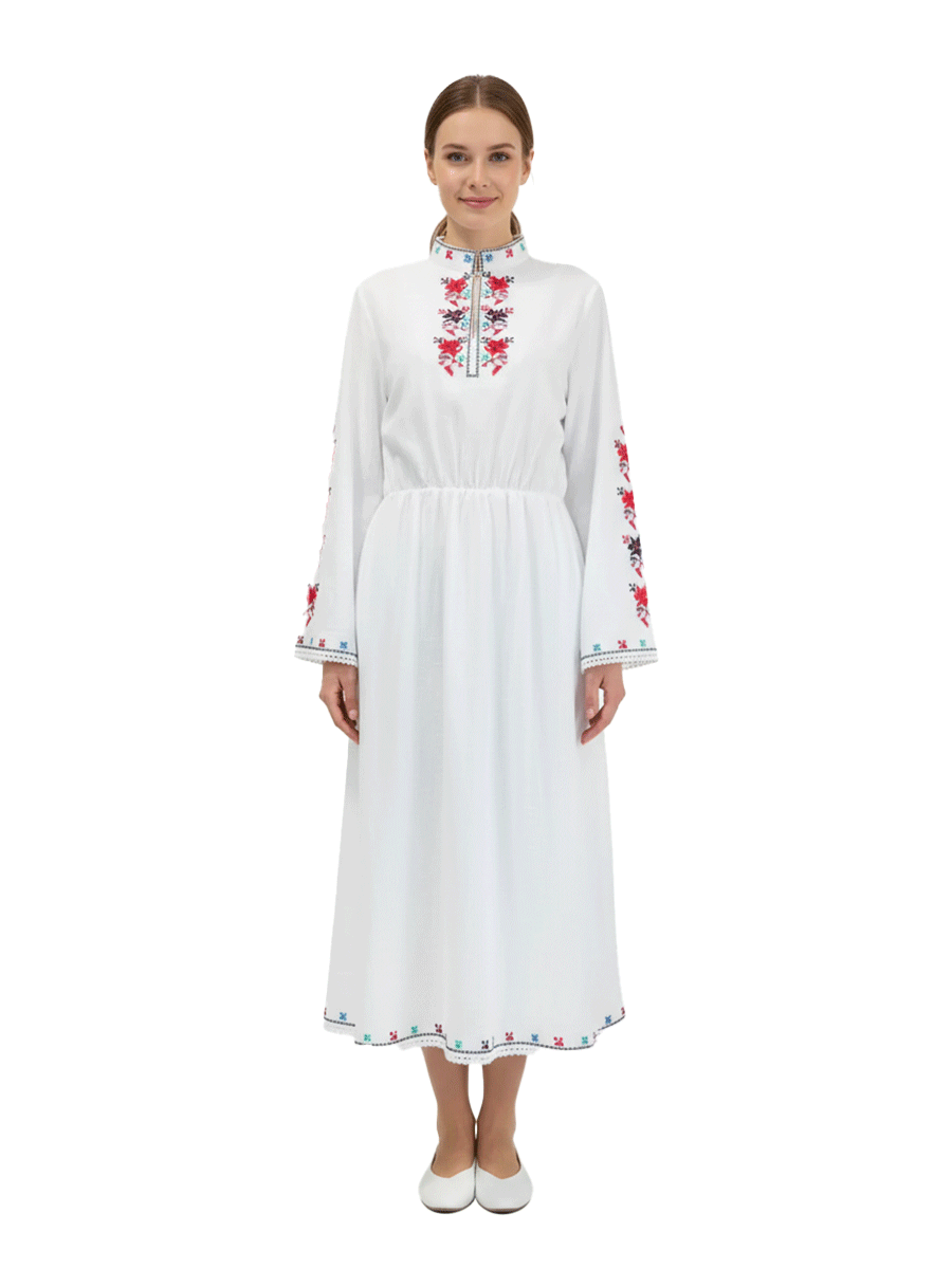 Елегантен модел с дължина под коляното, обогатен от бродерия на Автентични Северняшки шевици, придаващи уникален стил и изчистен вид.