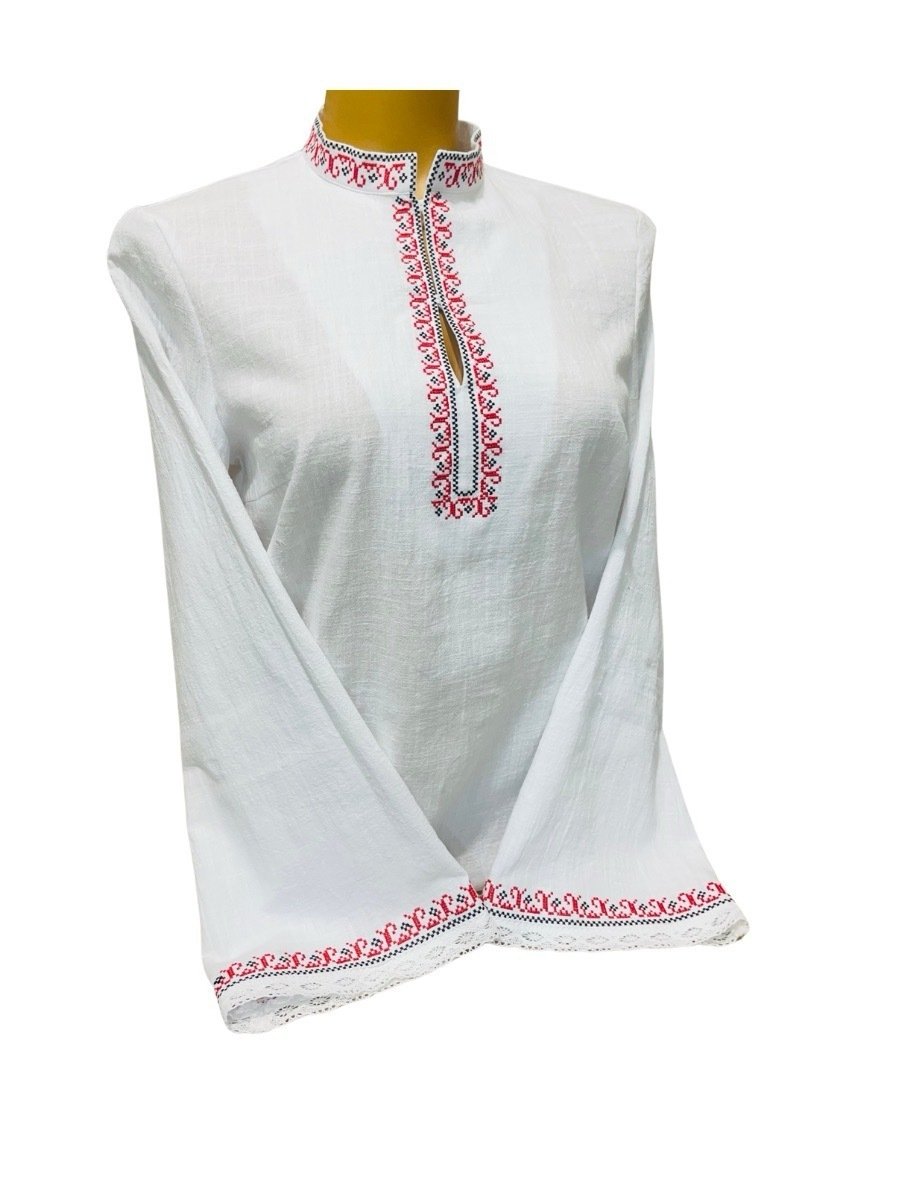 Изработена от висококачествен 100% памук, тази риза е създадена да осигурява удобство през целия ден. Дишащата памучна тъкан е изключително нежна към кожата и устойчива на износване, което я прави отличен избор както за фолклорни събития, така и за дами, които искат да вплетат етно елементи в модерния си гардероб.