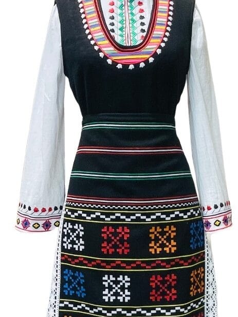 Дамска Странджанска носия, изработена от вълнен плат и памук и обогатена с бродерия на автентични шевици, придаващи уникален стил и автентичен вид.