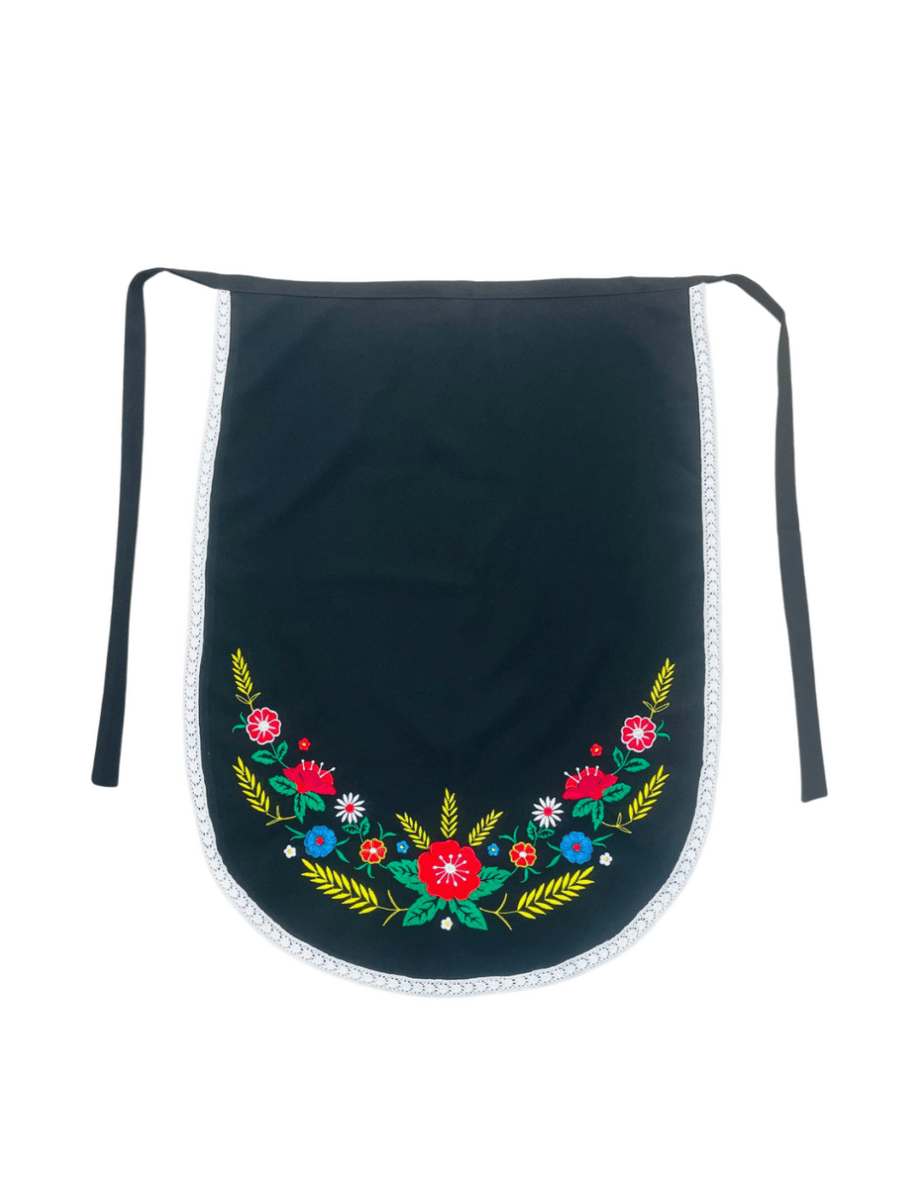 - Цвят: ЧеренДамска престилка, изработена от габардин и обогатена с бродерия на Тракийски шевици, придаващи уникален стил и автентичен вид.