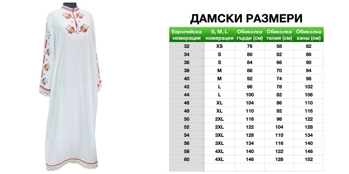 Всеки артикул в магазин Гайтан се изработва по Вашите мерки, съгласувани с нашите таблици с размери.