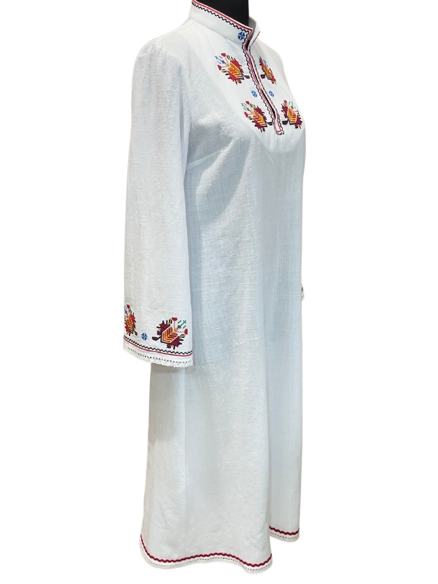Елегантен модел с дължина под коляното, обогатен от бродерия на Автентични Тракийски шевици от региона на Сливен, придаващи уникален стил и изчистен вид.