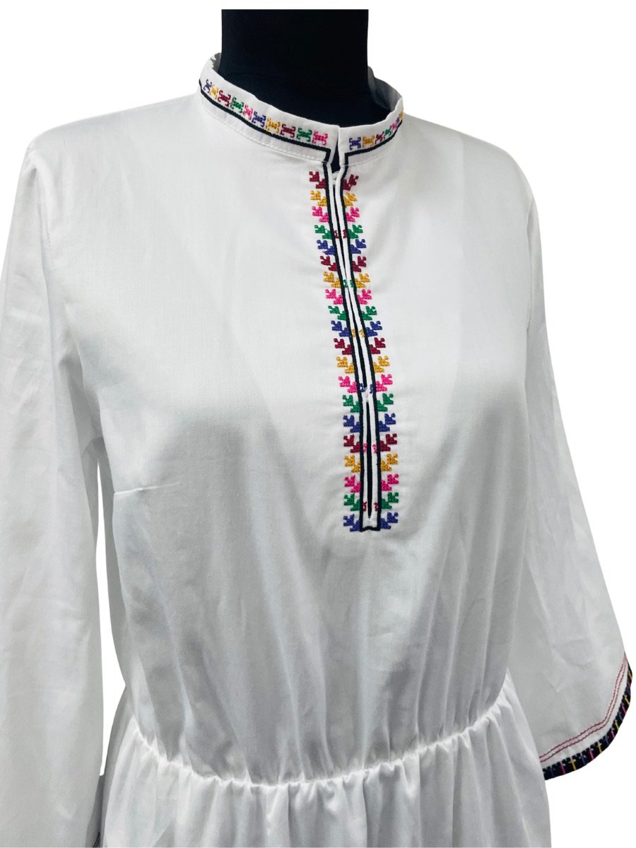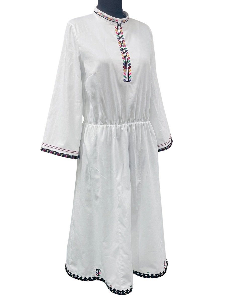 Елегантен модел с дължина под коляното, обогатен от бродерия на Автентични Ваяшки шевици от село Солник, придаващи уникален стил и изчистен вид.