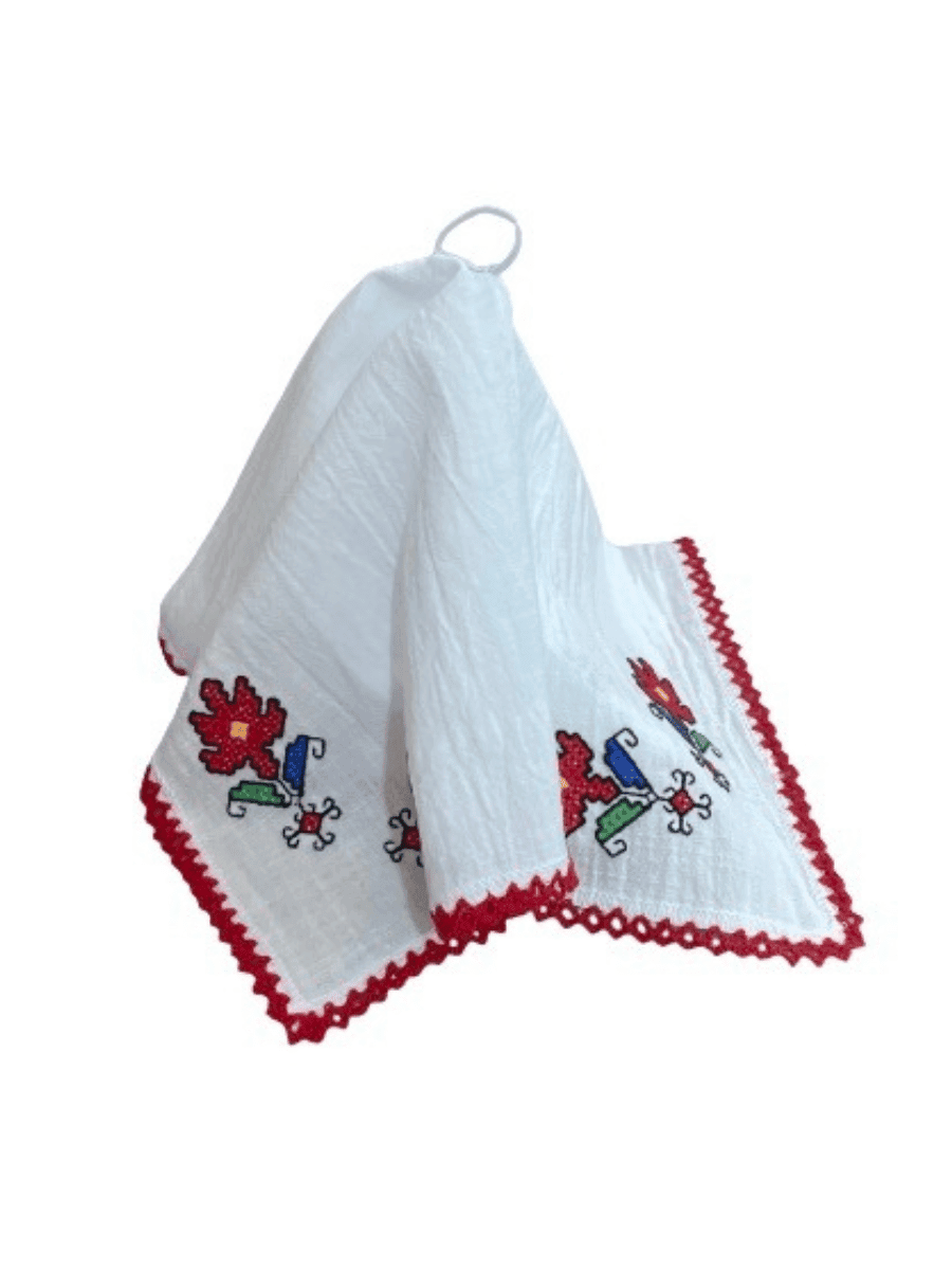 Тази кърпа за хоро е перфектното допълнение към народната носия, добавяйки изтънчен завършек и предоставяйки уникален и изящен вид.