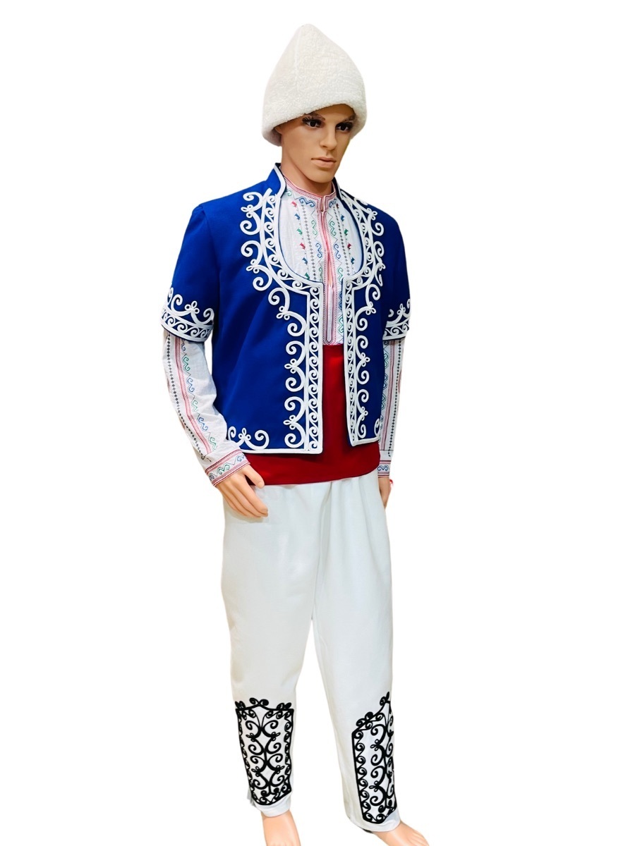 Традиционна Българска носия, изработена от вълнен плат и обогатена с бродерия на Автентични Шопски шевици и гайтани, придаващи уникален стил и автентичен вид.