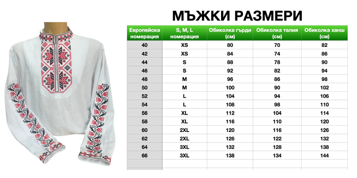 Тази мъжка риза пренася красотата на автентичните тракийски шевици, характерни за село Крушаре, община Сливен. Моделът е създаден за тези, които ценят чистотата на фолклорния дизайн и искат да носят част от историята на Южна България в ежедневието си.