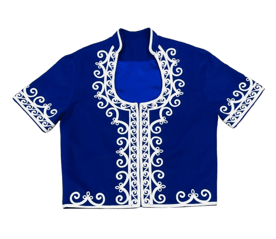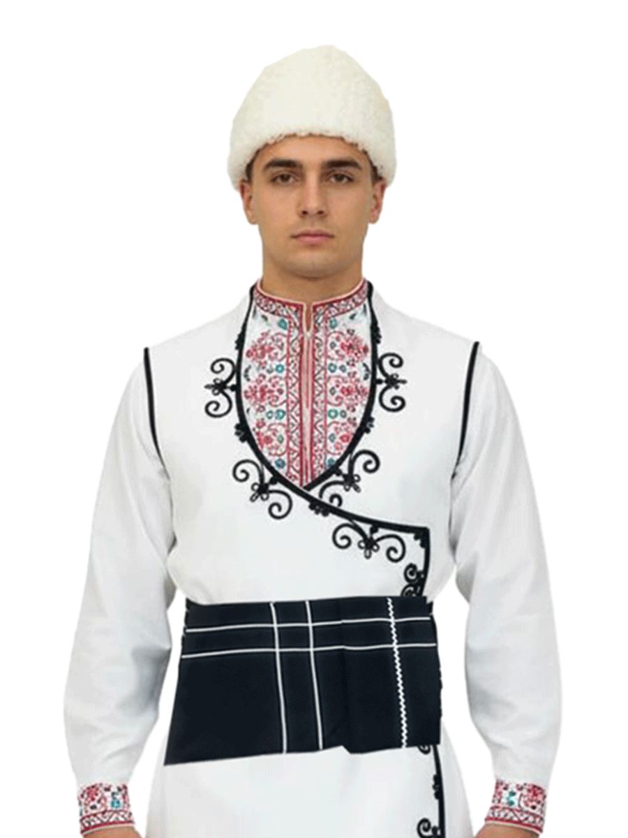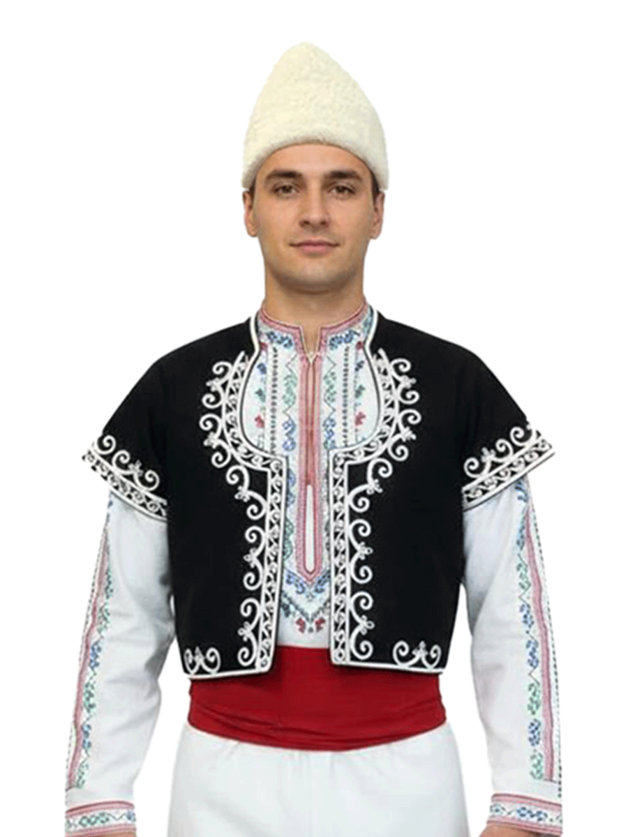 Шопски елек от 100% вълнен плат с извити бели гайтани. Свържете се с нас и поръчайте шопски елек с бели гайтани за народна носия.