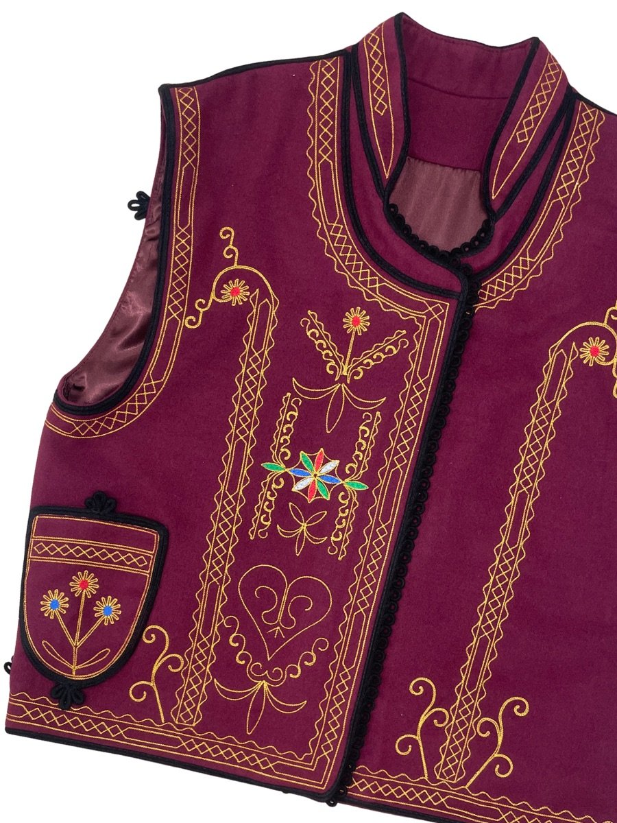 Основното предимство на този елек е неговата автентичност. Той е шит по строго традиционна кройка, която следва специфичните линии на ваяшкото мъжко облекло. Вниманието към всеки детайл и прецизното изпълнение гарантират, че елекът не само изглежда оригинален, но и стои стабилно, подчертавайки фигурата по един достолепен начин. Това е дреха, която пресъздава старинния силует с изключителна точност.