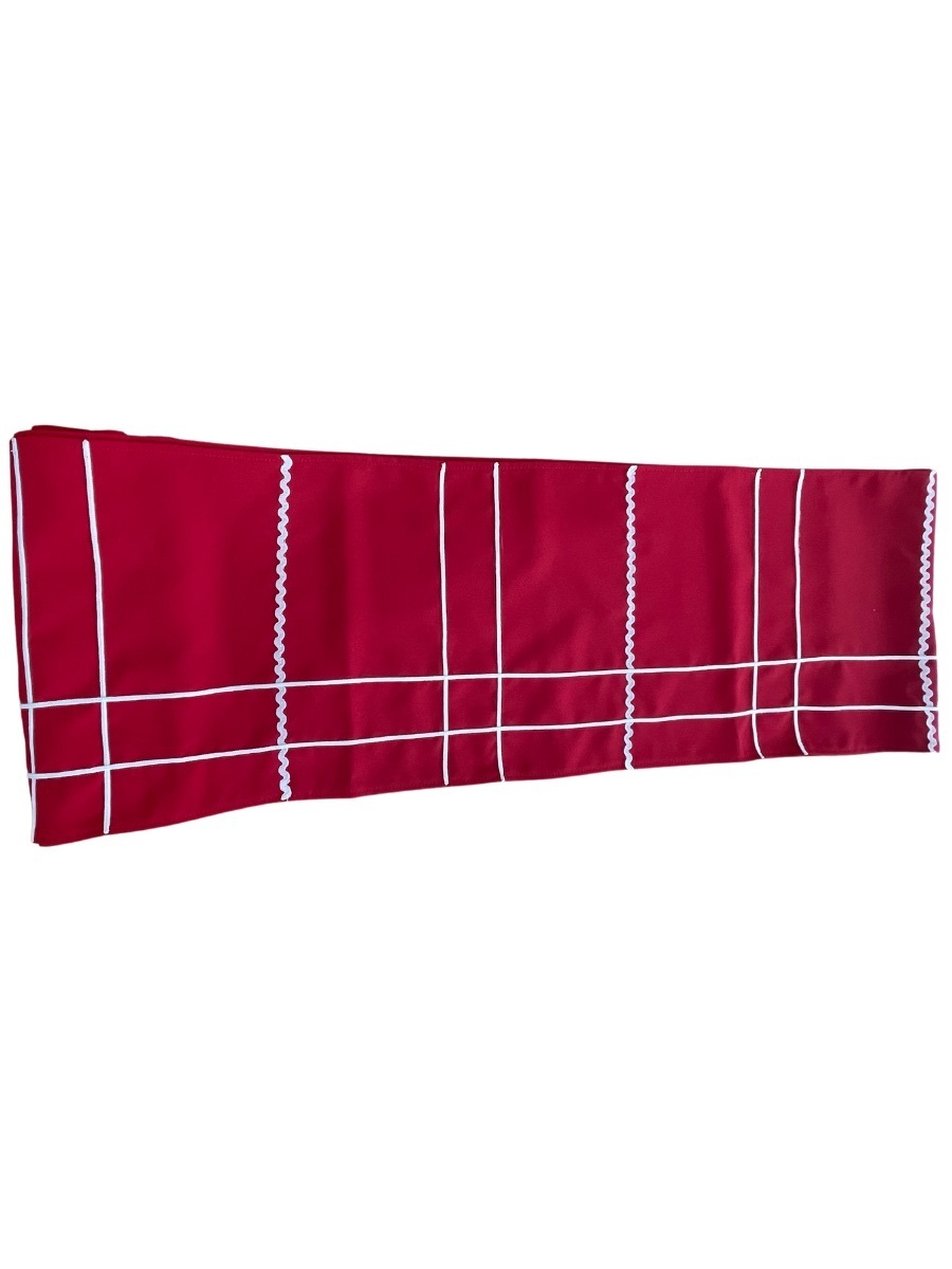 Червен пояс от вълнен плат, декориран с бели гайтани, който предоставя завършен и традиционен вид на мъжката народна носия.