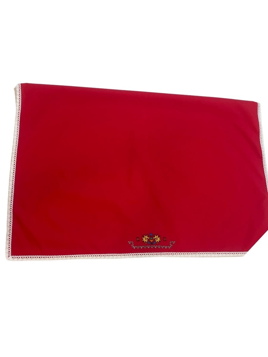 Тази кърпа за глава е украсена с изящни шевици, които придават изискан вид и автентичност.