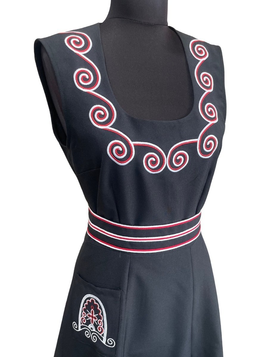 Модел 16 е изработен от 100% памучен габардин – материя, която съчетава мекотата на естествения памук с изключителната здравина на габардина. Този материал е изключително практичен, тъй като позволява на кожата да диша дори при най-активните танци, като същевременно поддържа безупречната форма на сукмана. Устойчив на мачкане и лесен за поддръжка, този модел е създаден да служи вярно и да носи радост на своята притежателка години наред.